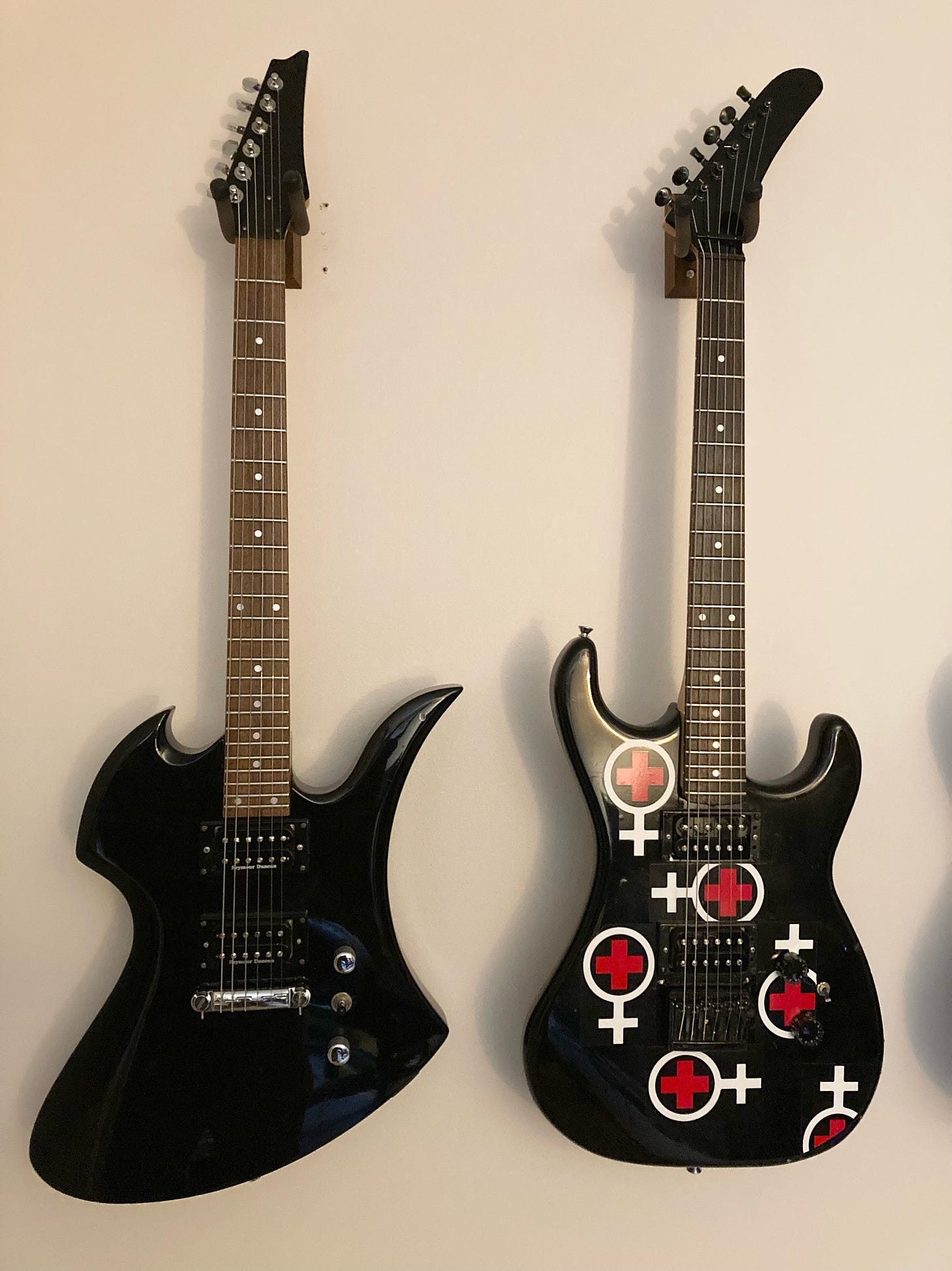 80’s Kramer partscaster, focus (ESP) body, aftermarket neck, PRS import pickups. Replaced Floyd Rose with standard bridge. My main player for a couple years.