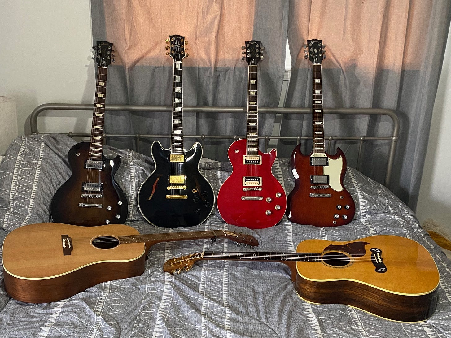 Favorite guitar is an Ibanez art wood 340. For some reason it has the mojo.