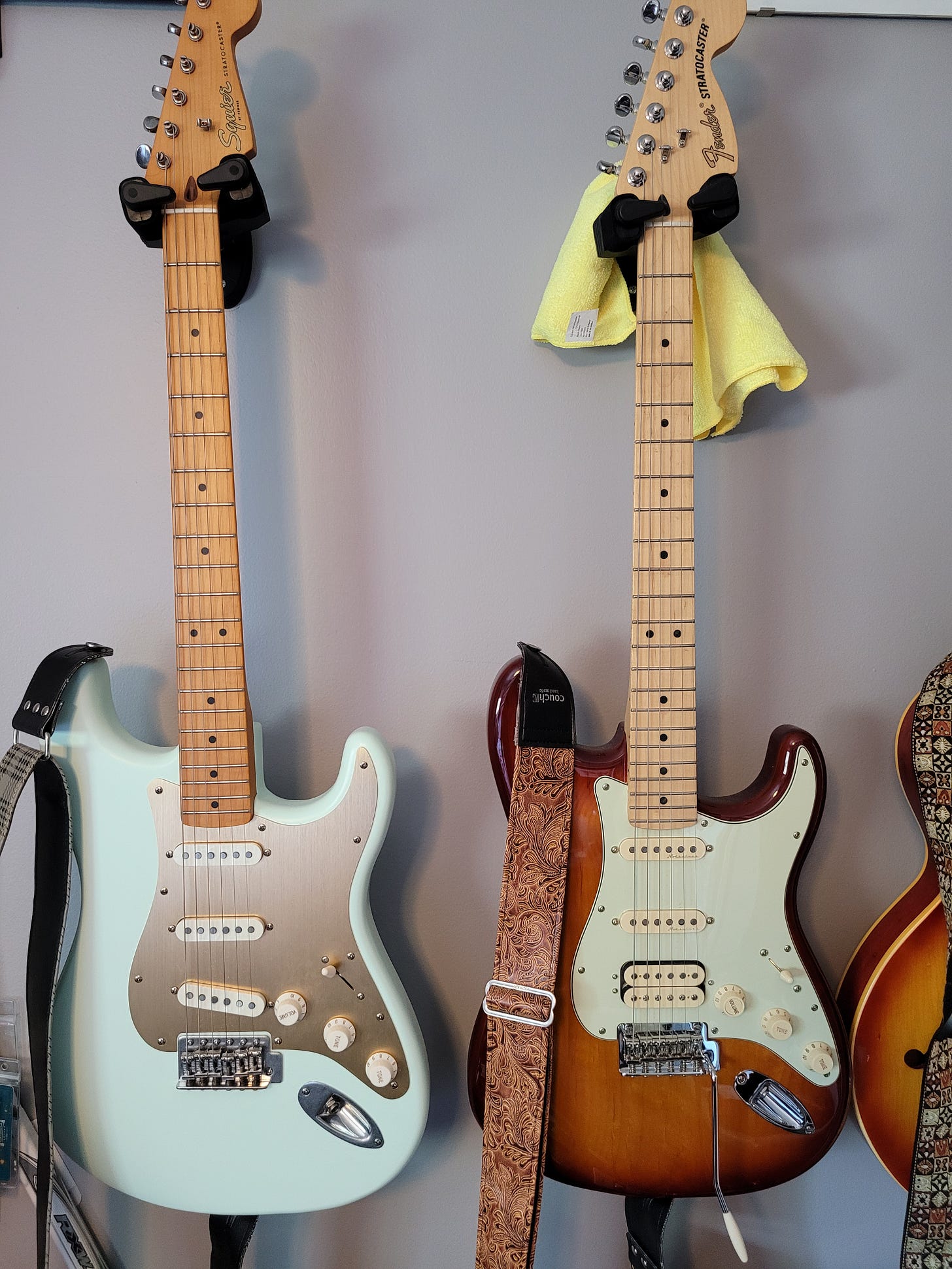 The Duo sonic I have is what I'd consider my first "nice" guitar. I got it for around 500 bucks from my local music store, and have loved it every minute I've played it. It's like a go-kart, it's impossible not to have fun playing it.Squier 40th anniversary Stratocaster
