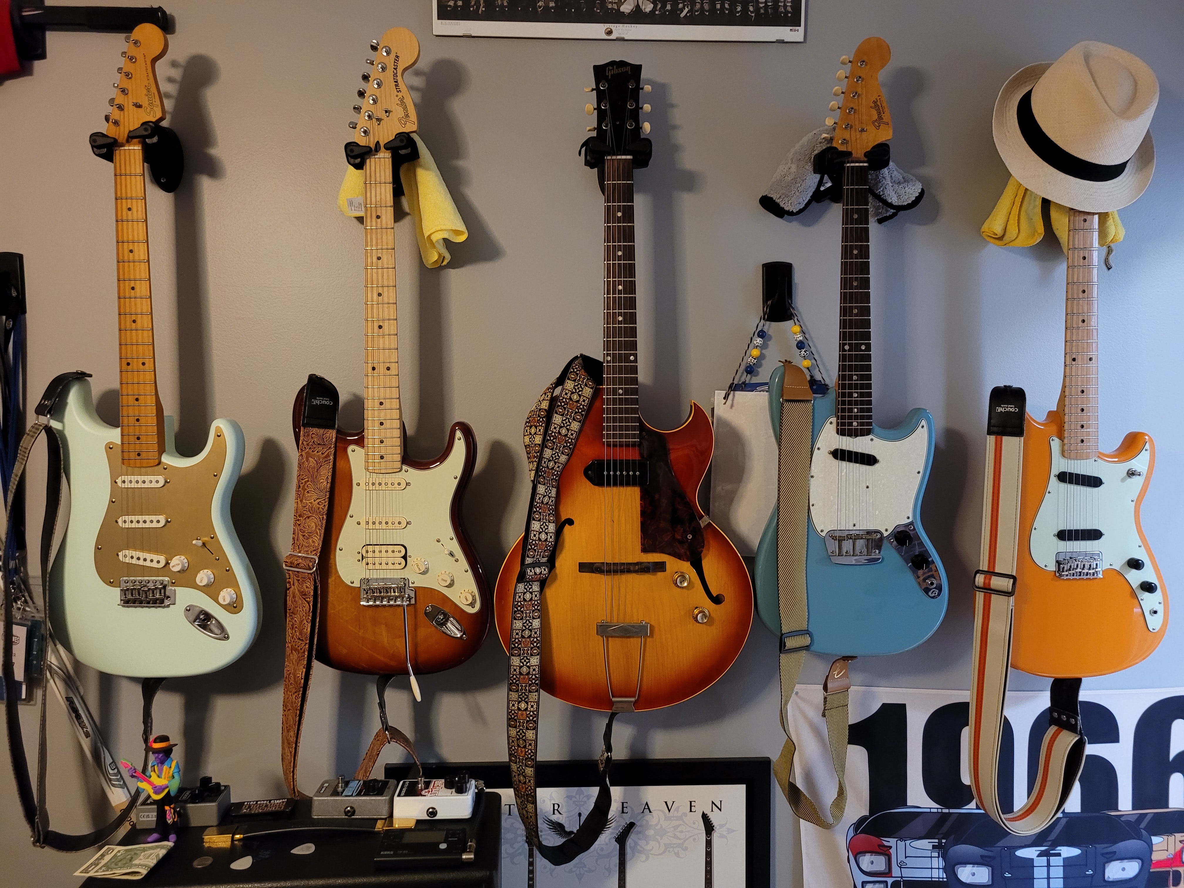 Currently I'd say either my HSS Strat or my Musicmaster. The Strat because it can fill pretty much any role you need it to, and the Musicmaster because of the exact opposite reason; there's next to no controls on the guitar except for your volume and tone knobs, which just let you get right into playing instead of flipping through pickups trying to get the best sound possible. I also like the narrow neck on it.
