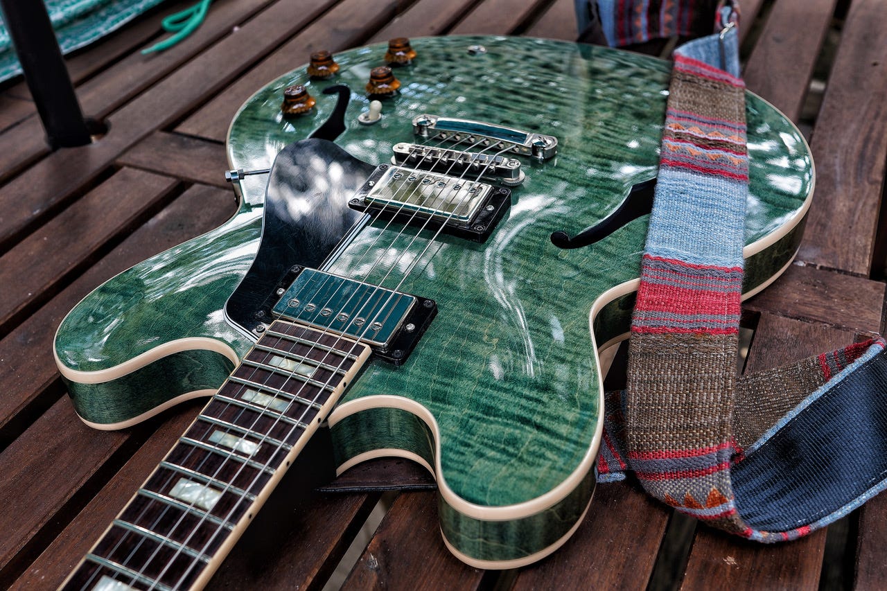 This one was horribly photographed by the shop selling it, so I was originally going to check it out thinking it was a blue plaintop. Once I saw it in proper lighting it definitely came to life. This thing won me over with how the #7 pickups instantly got along with all of my drive pedals. Built like a tank, and plays like a dream.