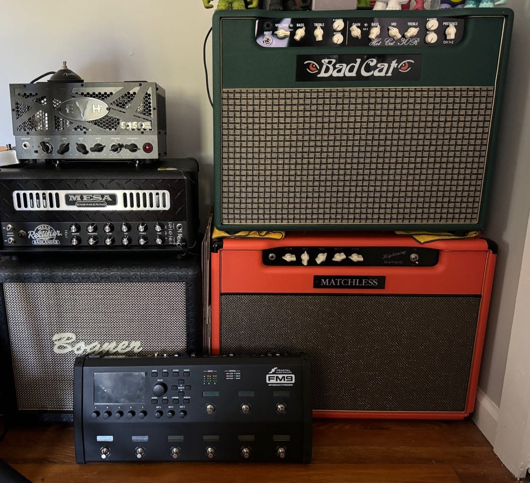 Over the years a career developed and playing with bands was less ideal, so he transitioned more into home writing and recording, along with gear hoarding. Over the years tons of items have come and gone, but gear times are good atm!